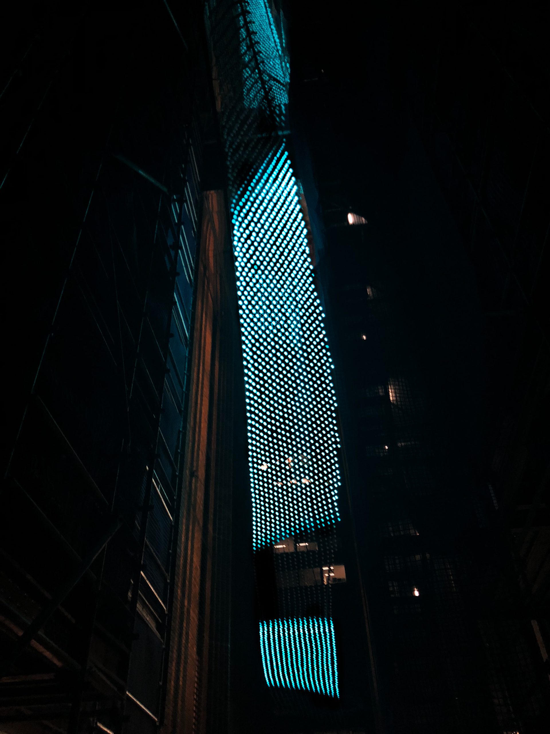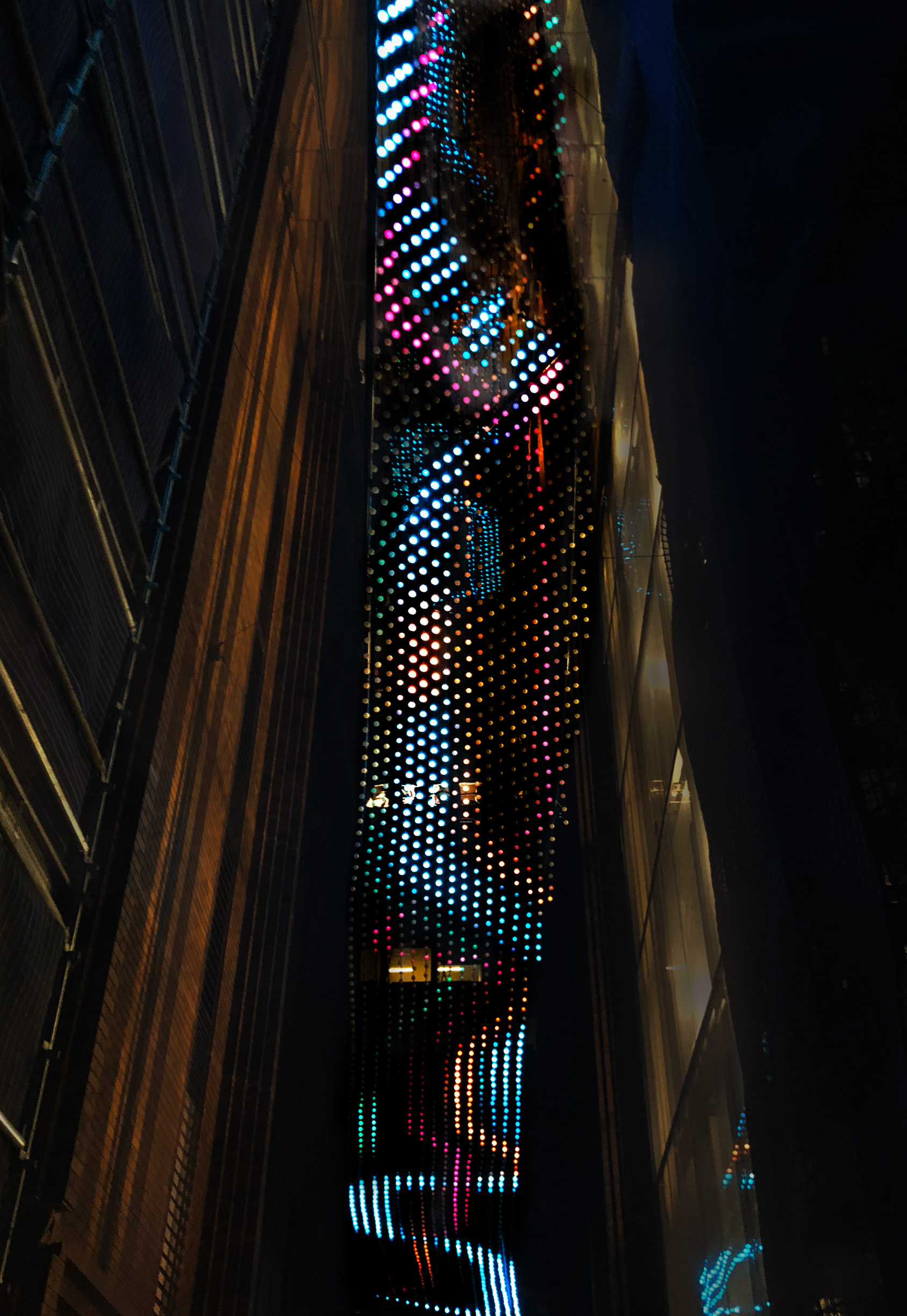 The form itself is reflective of a path of flight through the air, and the subtly shifting palette of colour and movement in the lights brings an ever-changing energy and life to the atrium sky space, while reflecting the urban rhythms of the community below.